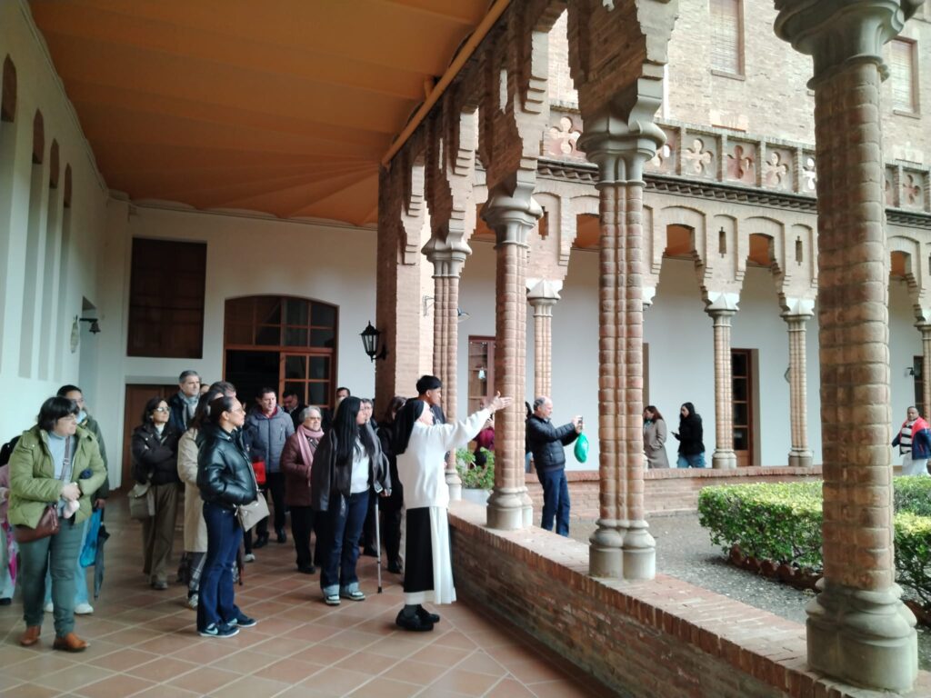 L’atri, l’església i el claustre s’omplen de visitants. Participen de l’Eucaristia i a l’acabat la Mare Núria Illas els explica la Història del Monestir, l’Església, la Mare de Déu del Cor i el Claustre, on passegen per tot l’espai.